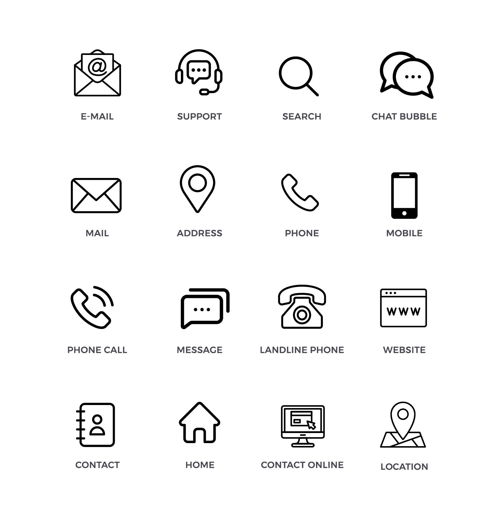 Contact Icons are small graphical symbols used to represent different methods of communication. They help users quickly identify ways to connect with a person, business, or service. Common contact icons include: